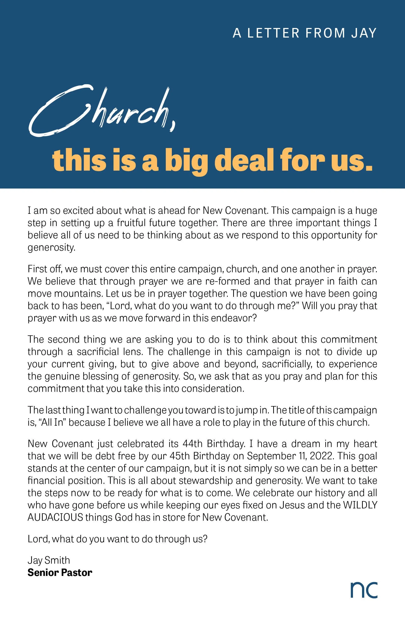 All In Capital Campaign 3-Year Pledge Card