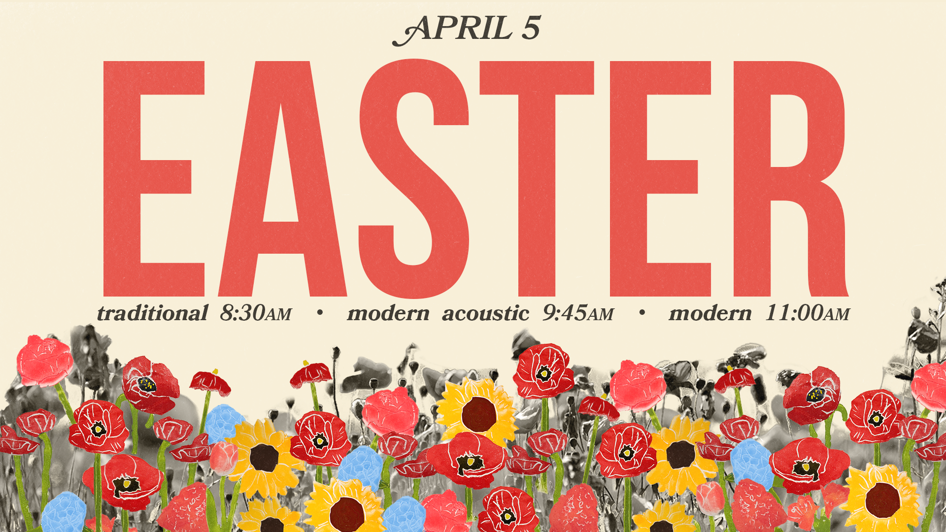 We have a new schedule for Easter Sunday this year! In order to create space for guests to join us for our Easter celebrations, we have added a service at 9:30 am in the Chapel that will include live acoustic music from our modern worship team, and Pastor Jay will share the Easter message.