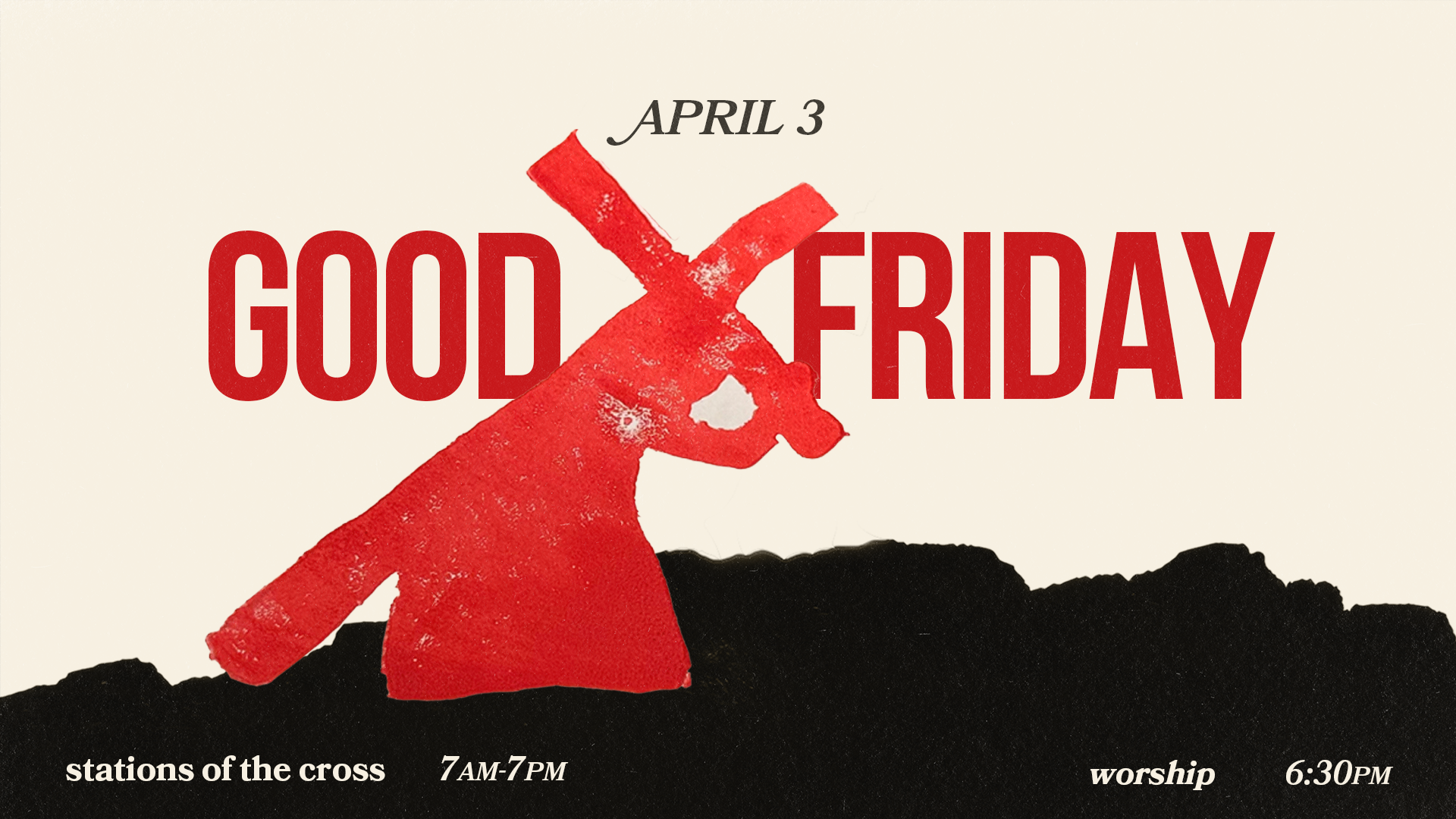 Join us on Friday, April 3, as we remember the events leading up to Christ’s crucifixion through a Good Friday Service at 6:30 pm in the Worship Center. Nursery care is available.