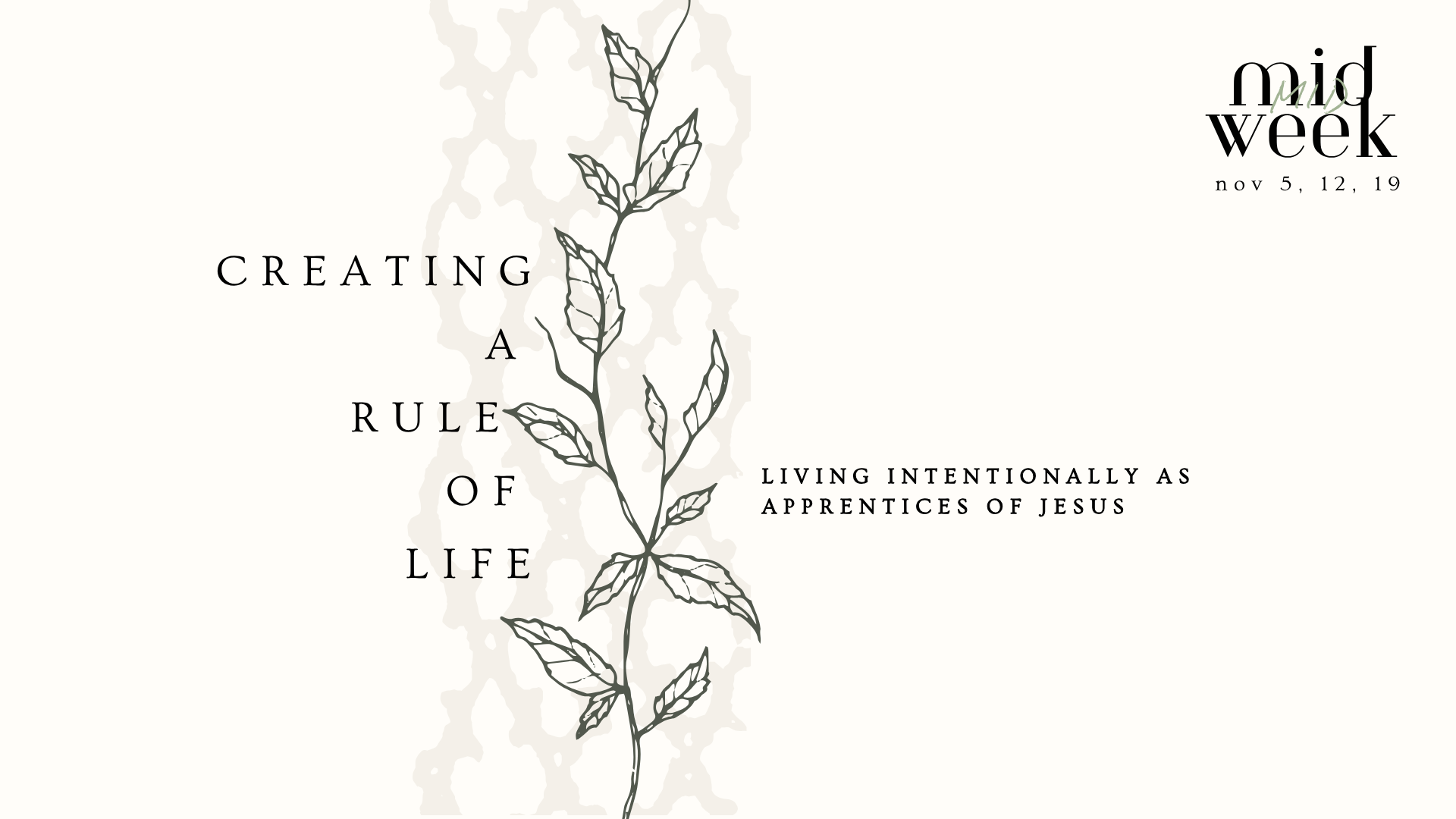 Join us for a three-week class on Creating a Rule of Life this November. A Rule of Life is a helpful tool to organize your life in order to live intentionally in your apprenticeship to Jesus. We will walk through what exactly this means and then get to work creating our Rule of Life together in class. This class is a seamless next step if you have been a part of Renovating our Hearts or the Renovation of the Heart classes and teachings. We will meet on November 5, 12, and 19, at 6:30 pm in the Fireside Room.